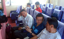 談合坂サービスエリアで休憩後、また事故渋滞。皆お疲れ休み。最後に到着時間当てクイズに挑戦し、小雨降るなか予定を2時間遅れて橋本駅に19時到着。
