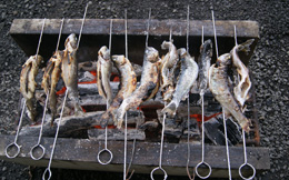 | 【魚さばきにドキドキ・・・】 | 【串刺すのも難しい】 |